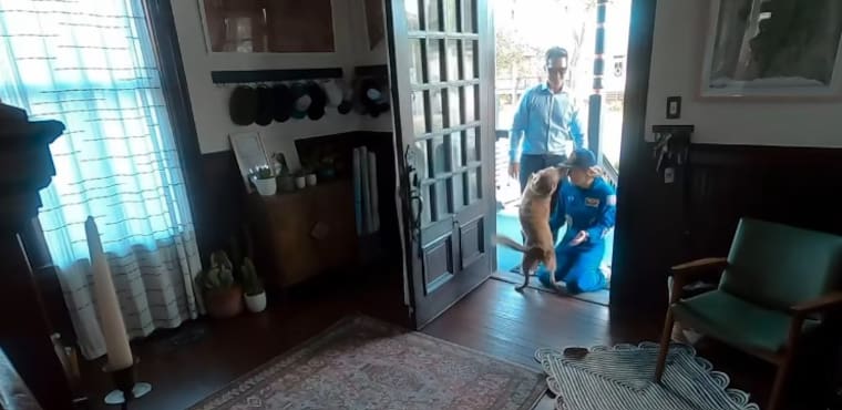 En el clip audiovisual se ve cuando Koch llega a la casa y fue sorprendida por la efusiva reacción de Sadie, quien no dudó en correr hacia ella y abalanzarse con emoción.