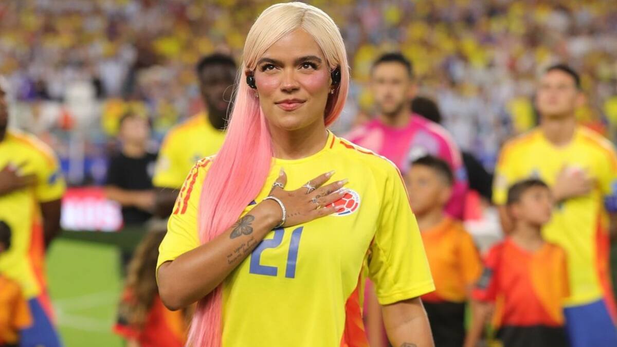 Así pues, Karol G lució la amarilla con el número 21, dorsal con el que habitualmente juega el lateral derecho Daniel Muñoz, quien salió expulsado en el partido de semifinales ante Uruguay.