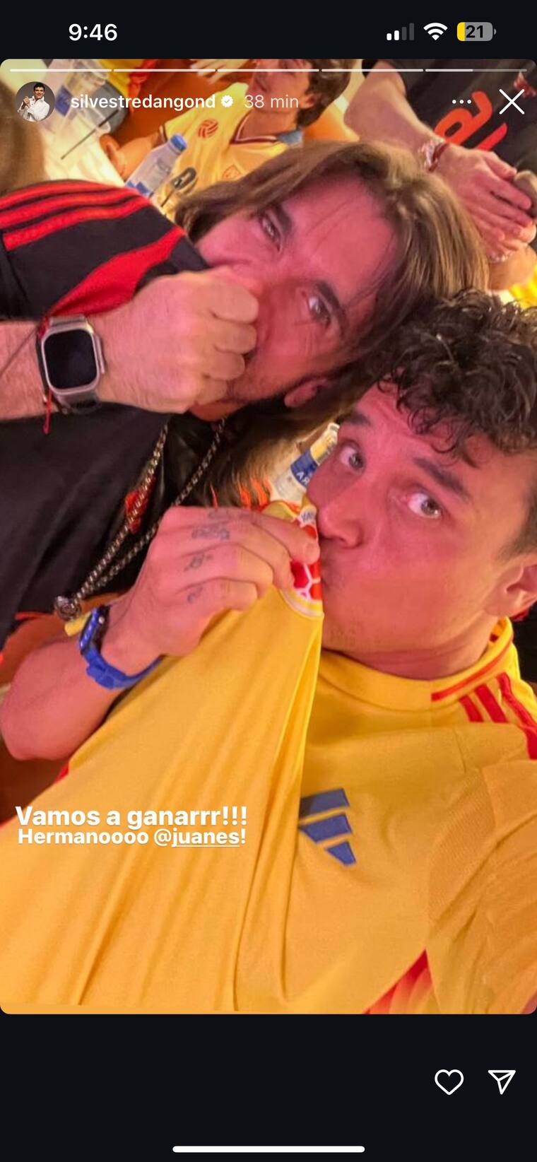 También señaló desde sus historias que: “Lo que pasó ayer fue una experiencia sentida y bonita ver a mi selección Colombia en una final de la Copa América contra el campeón del mundo, jugando como nunca. Primera vez que siento que tenemos un equipo, todo el mundo echando para el mismo lado, sin individualismo, sin egos, se le nota la pasión por la camiseta”.