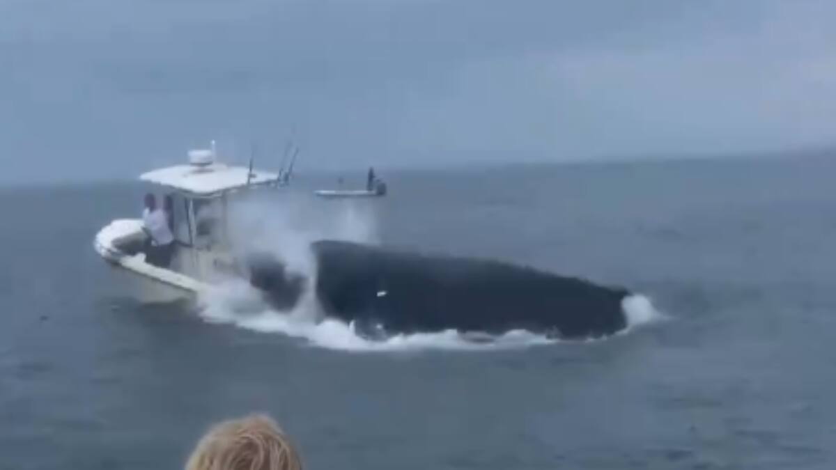 Frente a la costa de Portsmouth, en New Hampshire, una ballena jorobada cayó sobre una embarcación, ocasionando que el bote volcara, cerca del Parque Estatal Odiorne Point.