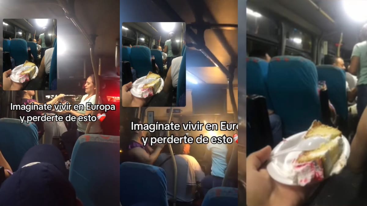 'Hoy las hermanas de un conductor de transporte público acompañaron a su hermano en su ultima ruta y le celebraron su cumpleaños. PD: nos compartieron torta a todos', escribió la pasajera Angélica María junto al video, de la celebración del conductor, que compartió en su cuenta de TikTok.