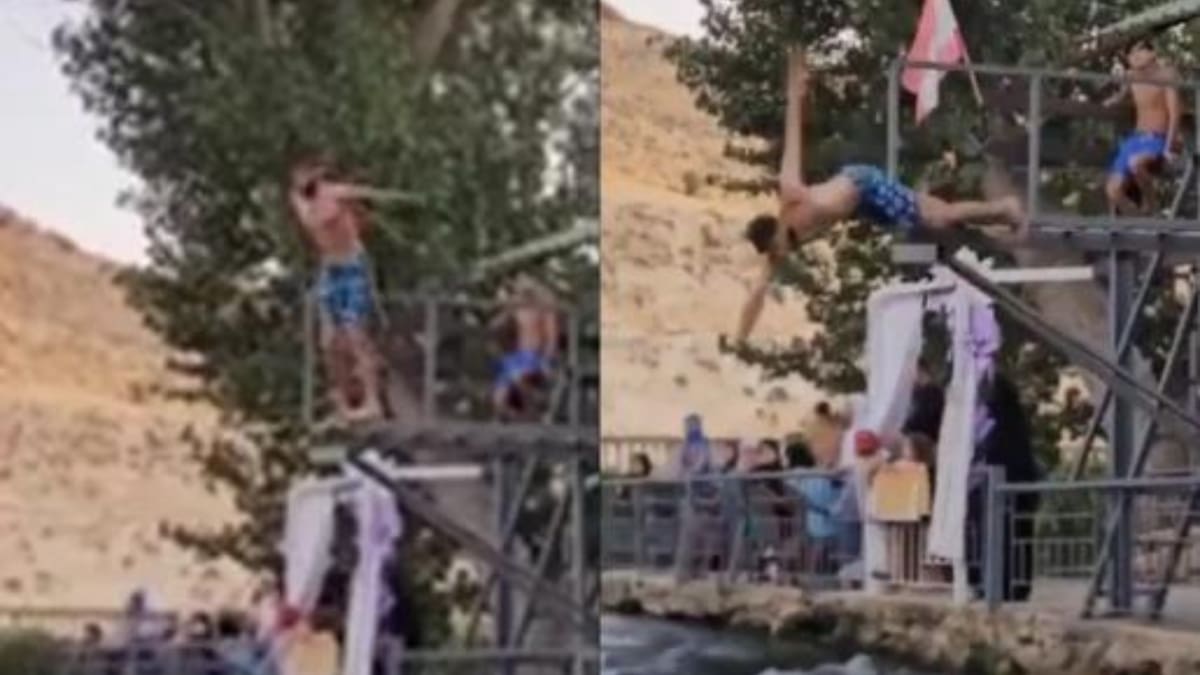La grabación muestra al joven resbalándose en el trampolín, quedando atrapado a una altura de tres metros con su pierna atascada en una rendija. En el intento de saltar al agua, perdió el equilibrio y quedó colgando dolorosamente del trampolín, resultando en una fractura severa en su pierna debido a la fuerza de la caída.