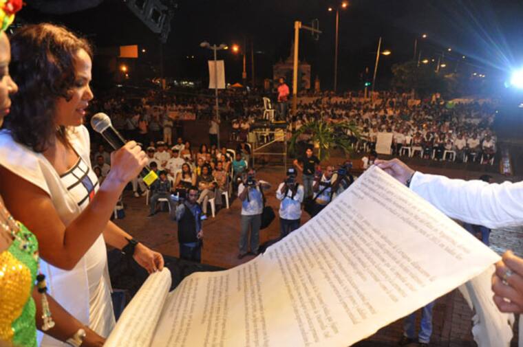 “Logramos, cinco años antes de la meta fijada en los Objetivos del Milenio, en eliminar en el analfabetismo en nuestra ciudad… cuando los lanceros de Getsemaní cruzaron por la Boca del Puente o Torre del Reloj rumbo al Palacio de la Proclamación, no solo por una independencia de España, sino de igualdad de derechos, uno de ellos, la educación”, contó Pinedo Flórez, quien estuvo acompañada de la ministra de Educación, María Fernanda Campo, y más de 40 delegados de la Unesco y la Unicef.
