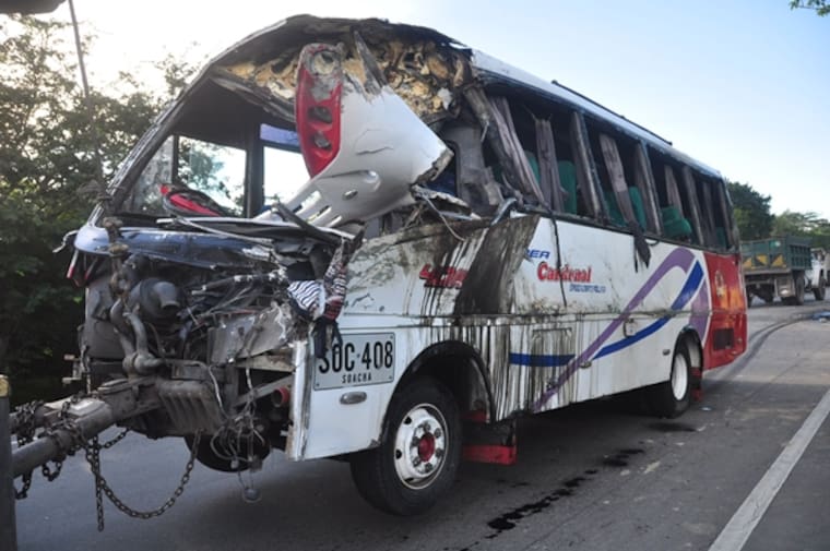 El ayudante de un bus de transporte interdepartamental murió y 14 personas resultaron heridas en un accidente de tránsito ocurrido en el kilómetro 52 en la vía entre Riohacha y Santa Marta, a las cuatro y treinta de la mañana de ayer.