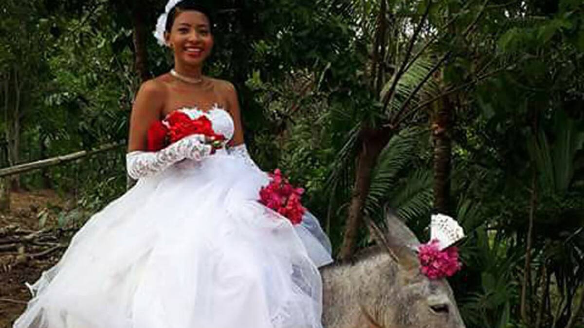 La imagen de una mujer vestida de novia y montada en un burro se ha hecho viral en redes sociales.