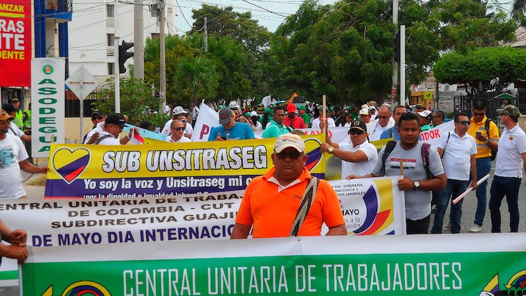 Animados con una banda, papayera y lanzando consignas para pedir mejoras laborales, los trabajadores de La Guajira marcharon por las principales calles de Riohacha, para conmemorar el Día del Trabajo.