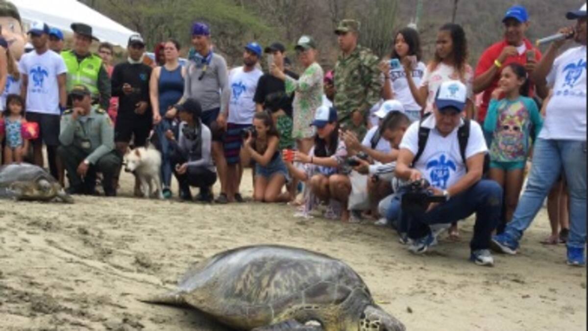 'Amenazas como la contaminación de los océanos, la pesca, el cambio climático, los desastres naturales y el comercio ilegal de sus caparazones o sus huevos, convierte a estos animales, los más longevos del planeta, en especies en peligro de extinción', dijo el director de Corpamag Carlos Francisco Diazgranados.
