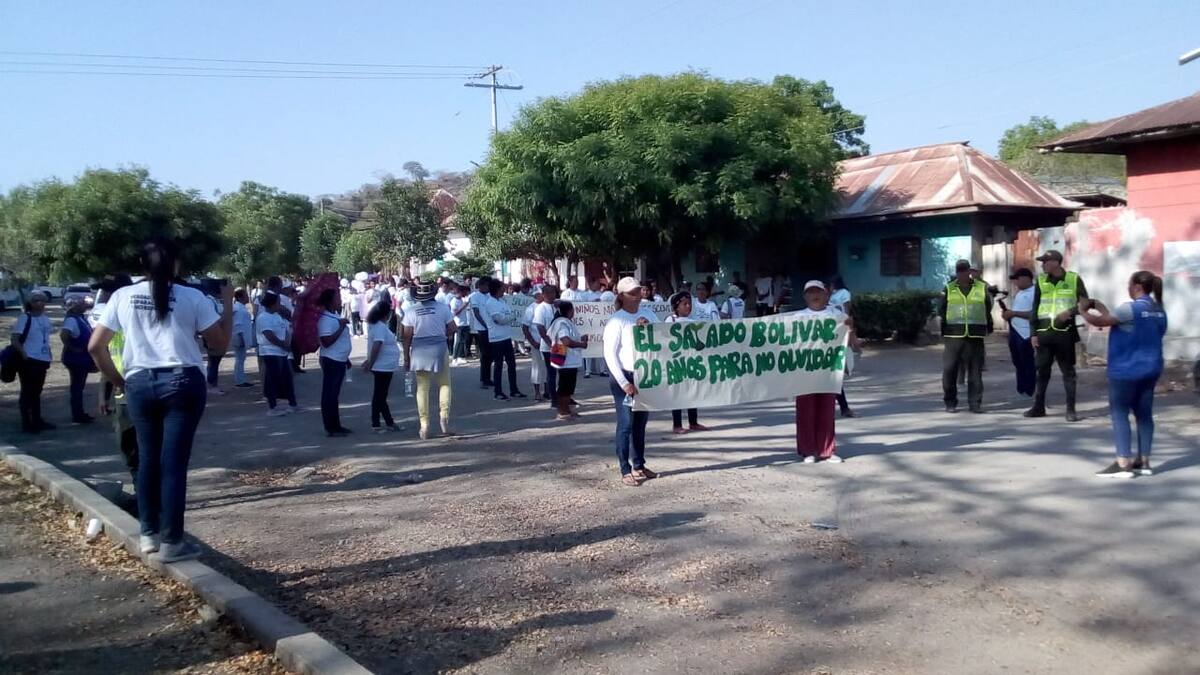 Desde las 8: 00 a.m., los habitantes de El Salado salieron a marchar por las calles del pueblo para conmemorar los 20 años de la masacre de la que fueron víctimas. El punto de encuentro fue el colegio de bachillerato Técnico Agropecuario de El Salado y finalizaba en el cementerio del pueblo.