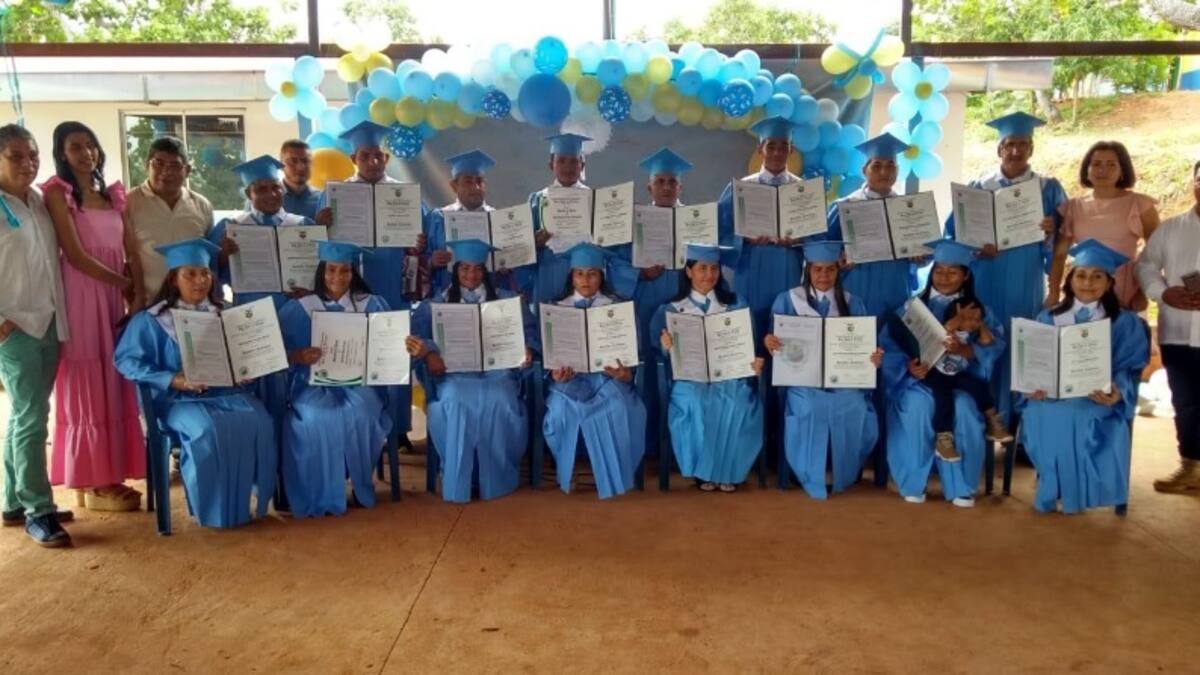 Durante la ceremonia, realizada en el antiguo ETCR Tierra Grata, la Institución Educativa Técnico Agropecuario San José de Oriente hizo entrega de los diplomas que certifican a los 16 excombatientes de las Farc-Ep como bachilleres tras la culminación de sus estudios de primaria, secundaria y media vocacional.