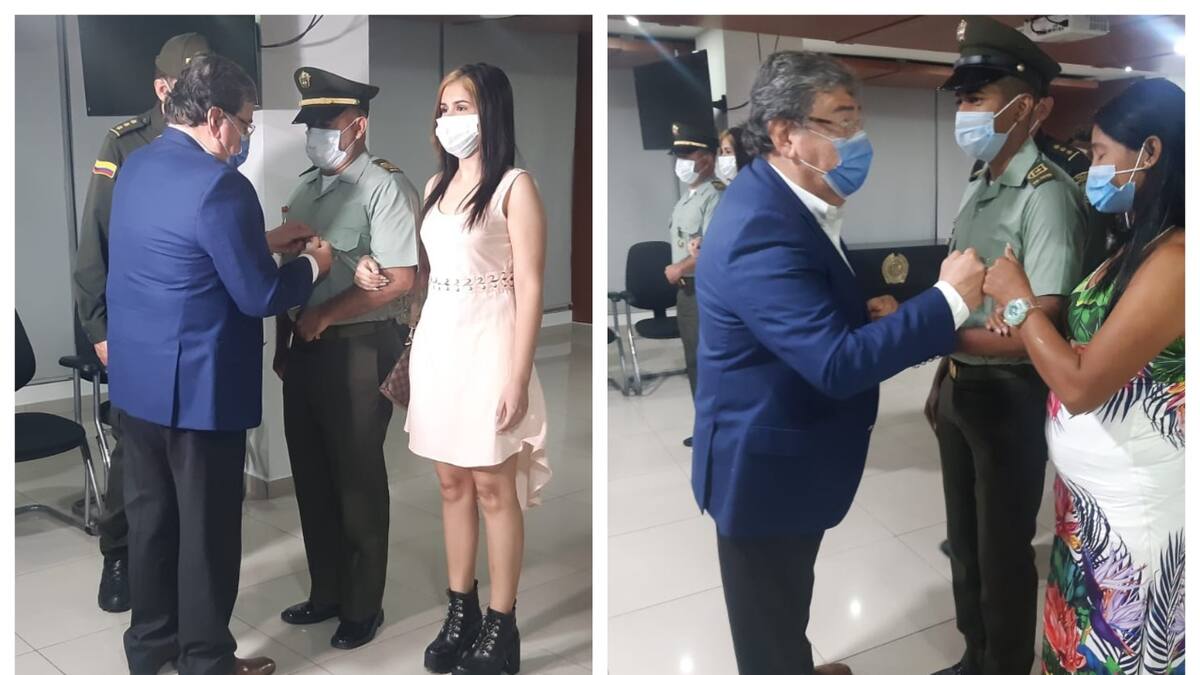 Se trata del intendente Pedro Alonso Ojeda Acosta y al patrullero Víctor Alfonso Barros Giraldo, quienes hacen parte del Cuadrante 1 de la Estación Bastidas.