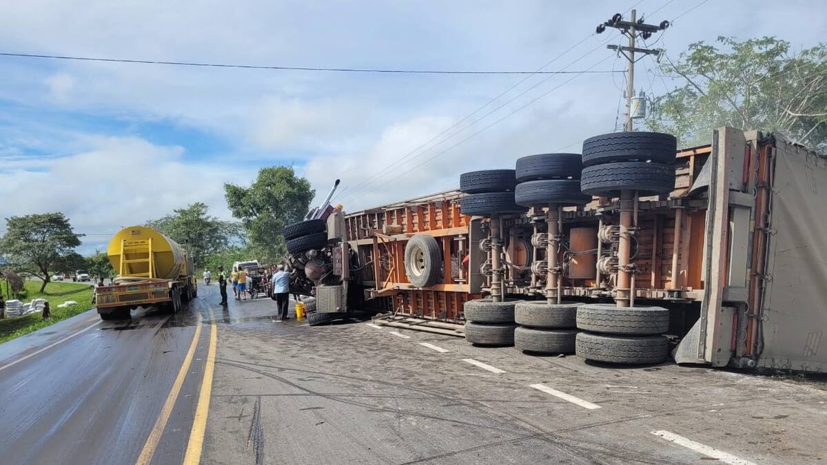 Las autoridades investigan los móviles del volcamiento lateral del tractocamión de color vinotinto y placas SRN-935 que conducía Carlos Peña, de 25 años, natural de Santander, y que logró salir ileso.