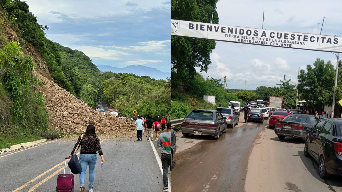 Debido al fenómeno natural hay viajeros represados en ambos lados esperando la intervención con maquinarias amarillas paras despejar la vía y que se pueda dar nuevamente la movilidad.