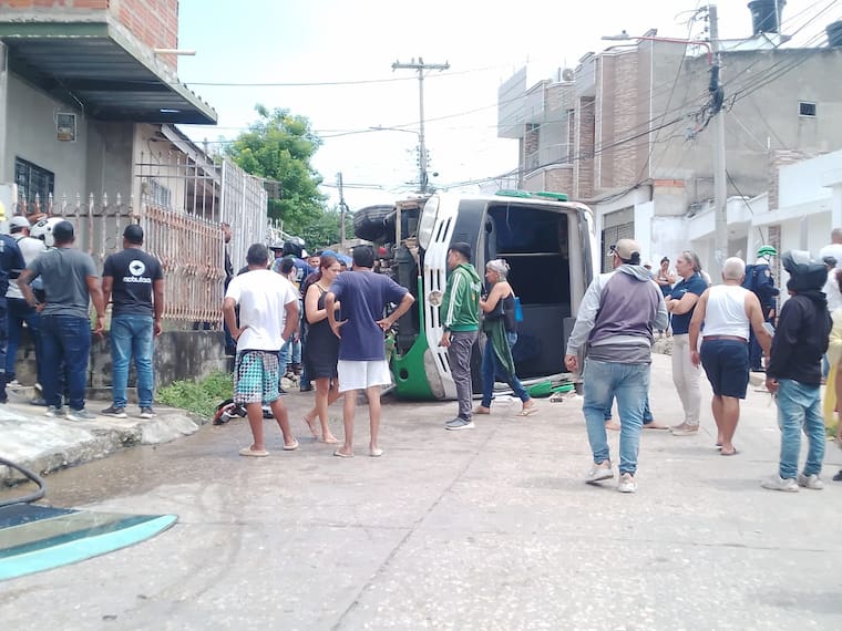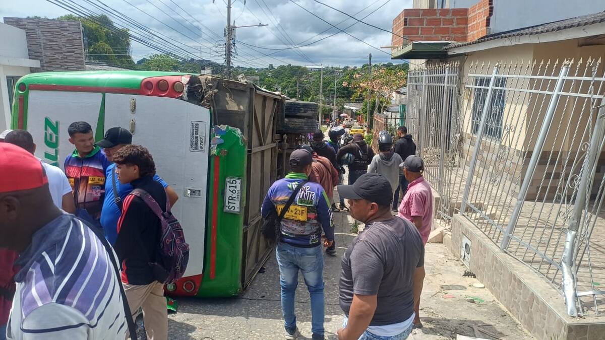 Un bus de colores verde y blanco y placas STR-615 de Corozal que fue contratado para transportar pacientes afiliados a la Nueva EPS entre las poblaciones de San Benito y Sincelejo, en el departamento de Sucre, terminó volcado lateralmente sobre vía principal del barrio El Bongo, al mediodía de este miércoles 17 de septiembre.