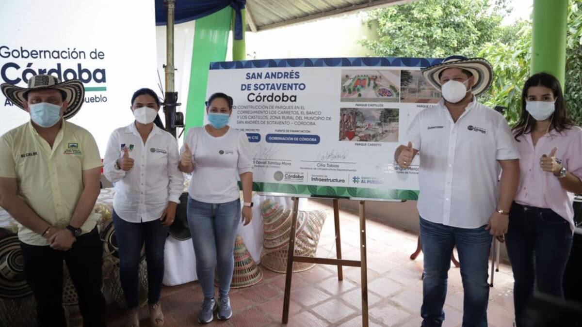 'En total las obras tienen un valor de $3.390.652.650 millones de pesos para la construcción de tres parques multifuncionales en zona rural de esta localidad. Seguiremos trabajando por llevar a las comunidades este tipo de obras que se convierten en un elemento integrador, que promueve la convivencia pacífica, la paz, los valores y conlleva a una mejor calidad de vida de la población, añadió el jefe de la administración departamental', puntualizó el mandatario departamental, quien estuvo acompañado por la gestora social del departamento, Martha Ruiz Solera; el alcalde de San Andrés de Sotavento, Estalin Madrigal; la secretaria de infraestructura de Córdoba; Cilia Tobías; y la directora de Indeportes, Leidy Moreno Zuluaga.