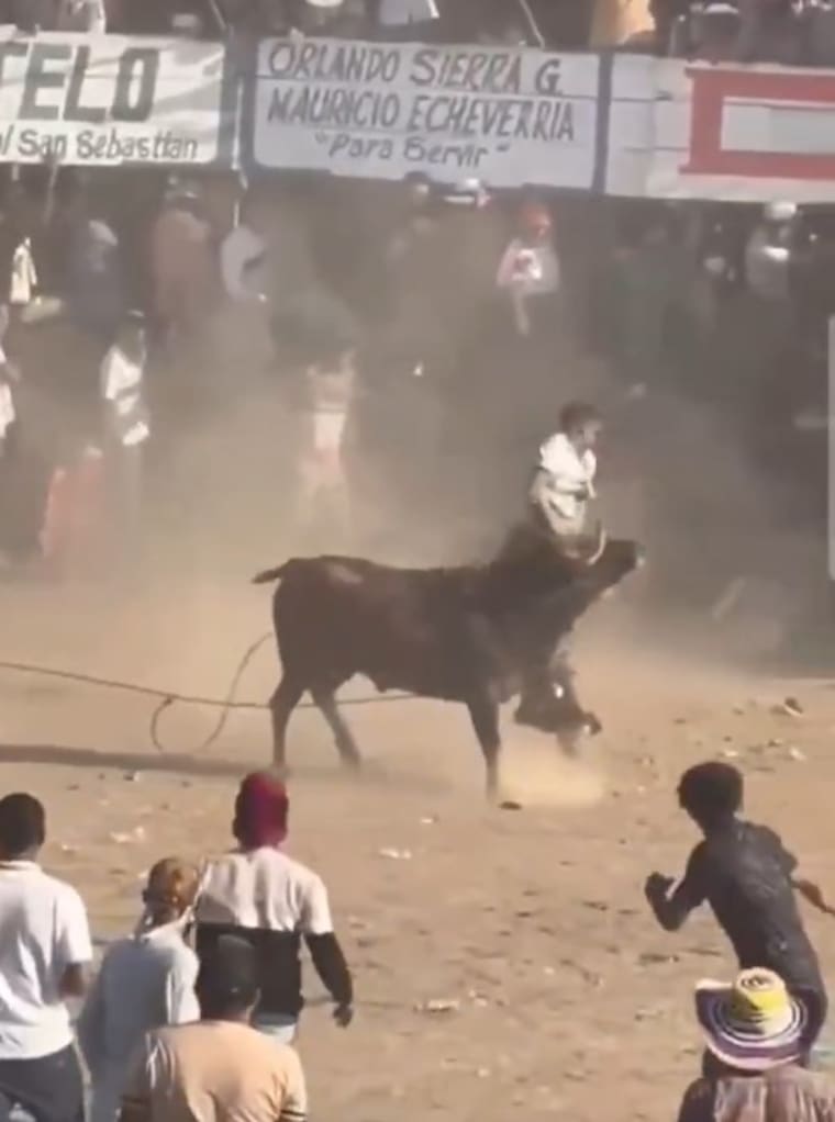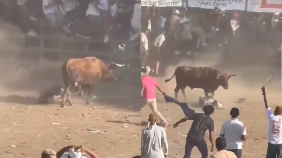 Durante el momento, la banda estaba tocando un porro, y los asistentes empezaron a bailar y aplaudir, cuando el toro se llenó de miedo y corneó a Escobar Torres.