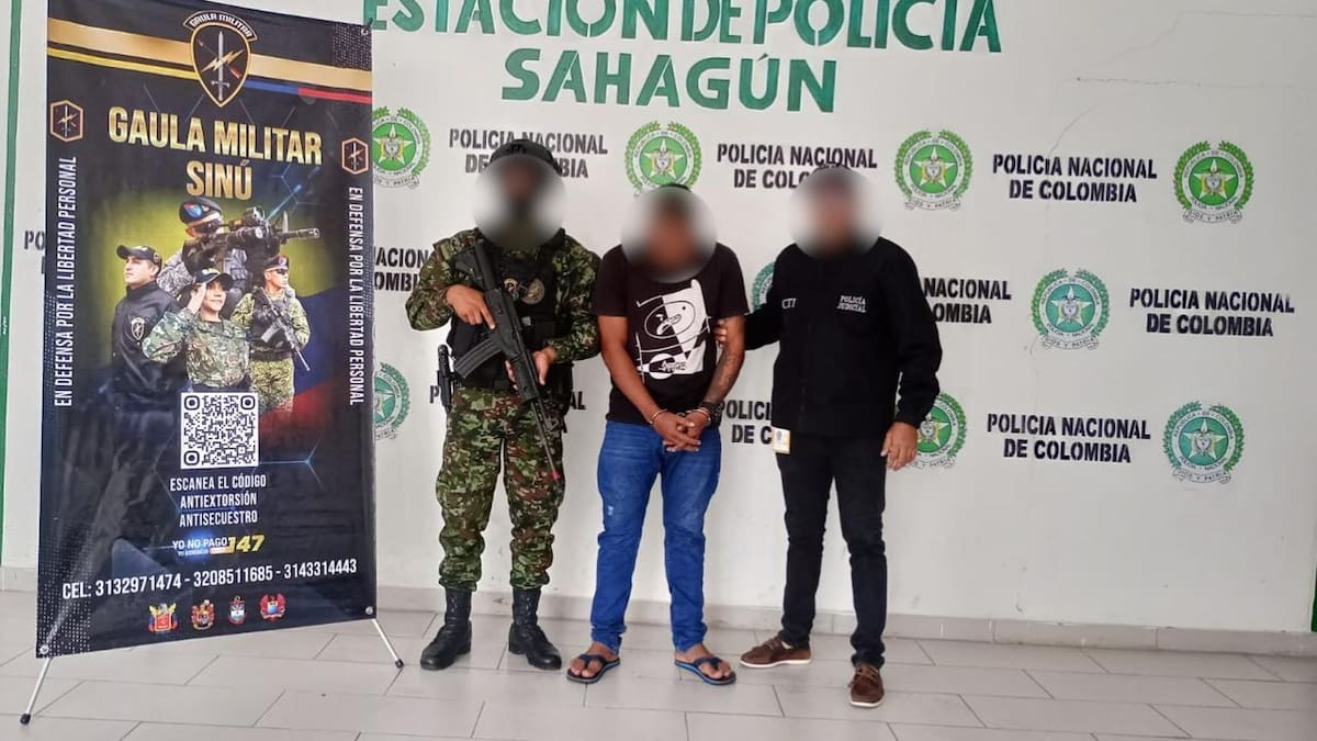 Tropas del Gaula Militar Sinú, en coordinación con la Policía Nacional y el CTI de la Fiscalía General de la Nación, en cumplimiento de la Campaña Ayacucho Plus, aprehendieron en el municipio de Sahagún, Córdoba, a un presunto sicario del Clan del Golfo, conocido con el alias de ‘Omar’.
