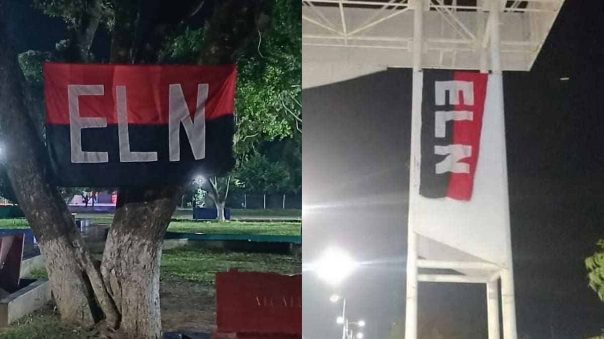 En diferentes parques y escenarios deportivos del municipio de Curumaní, Cesar, el Ejército de Liberación Nacional (ELN) instaló banderas alusivas a este grupo subversivo al margen de la ley.