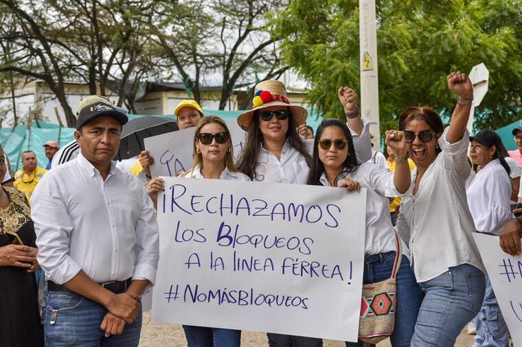 “Los empleados del ferrocarril brindamos apoyo a nuestra empresa Cerrejón. Hacemos un llamado a las autoridades para que hagan respetar el derecho al trabajo. No más bloqueos”, afirmaron empleados de la empresa durante la concentración.