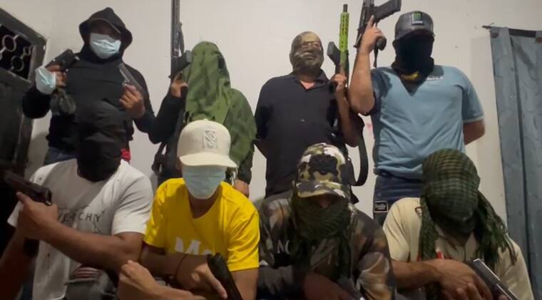 En total son ocho hombres que aparecen en el video portando armas de fuego como fusiles y con el rostro tapado.