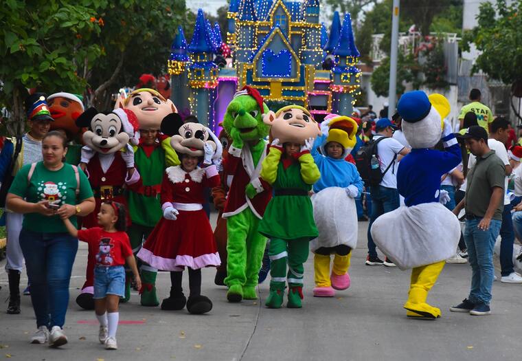 El alcalde Yahir Acuña Cardales y su esposa Sofía Méndez, gestora de la productividad e innovación de Sincelejo, y además organizadores de la Gran Parada Navideña, encabezaron el llamativo y colorido desfile. Ambos estaban disfrazados y fueron solicitados por los niños para las fotografías.