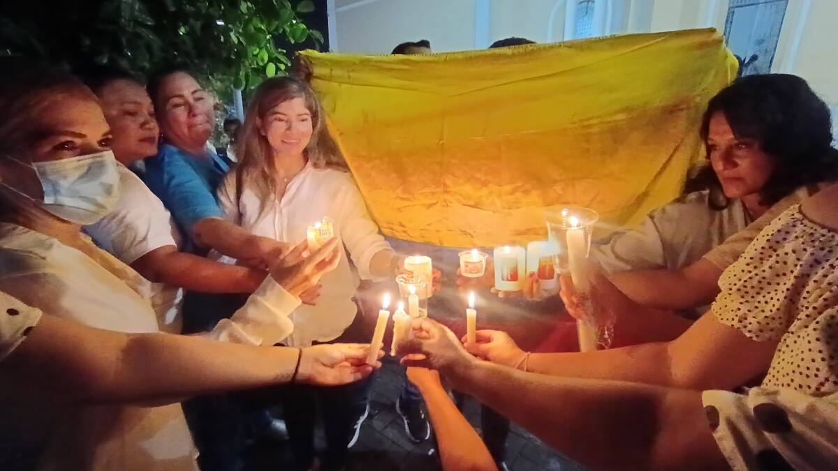 Los presentes estuvieron con camisas y camisetas de color blanco, banderas de Colombia y velas blancas encendidas.