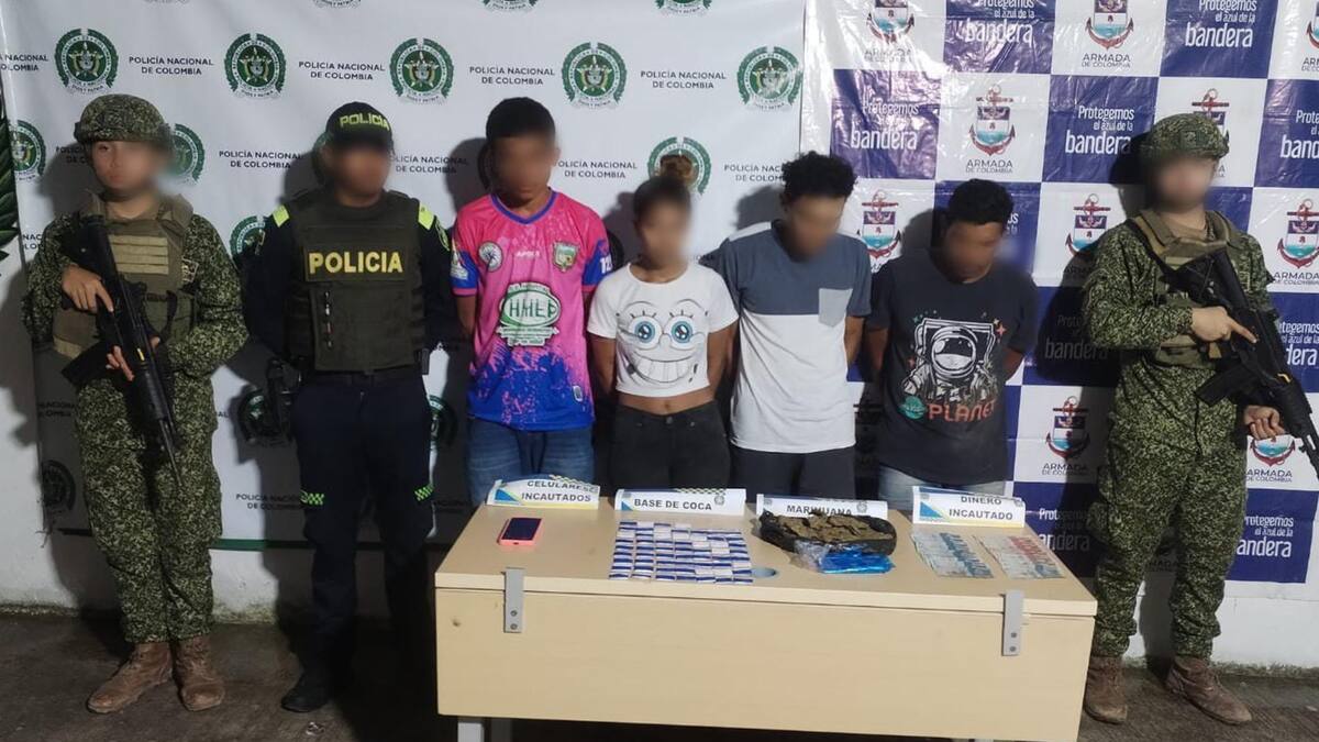 Cuatro presuntos traficantes de estupefacientes, entre ellos una mujer, fueron aprehendidos por unidades de la Policía y la Armada Nacional en desarrollo de una operación contra el microtráfico.
