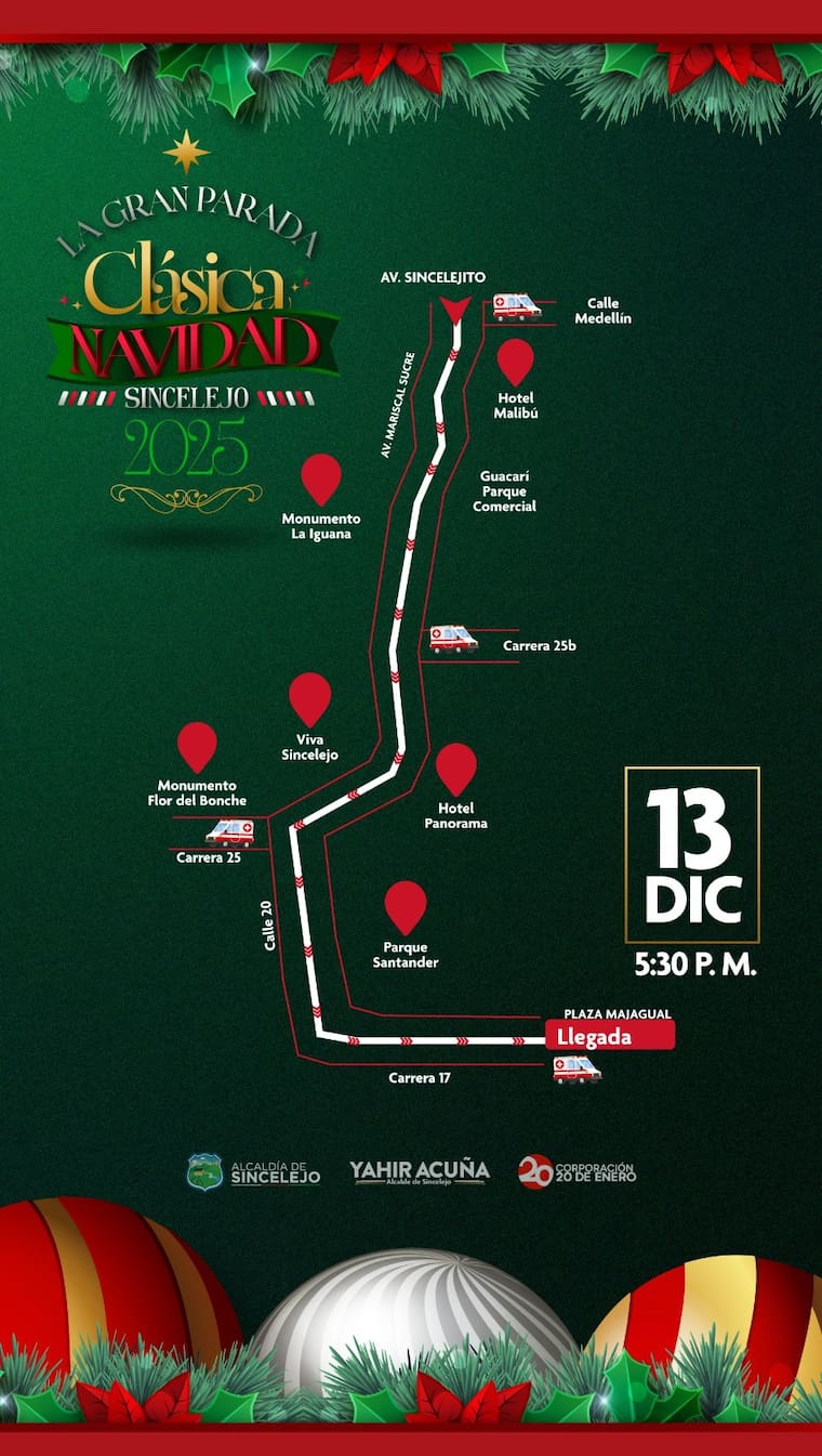 Las principales calles y avenidas de la ciudad de Sincelejo se llenarán de magia, color, alegría, música y muchas más muestras de Navidad este sábado 13 de diciembre con la realización de la Gran Parada Navideña.