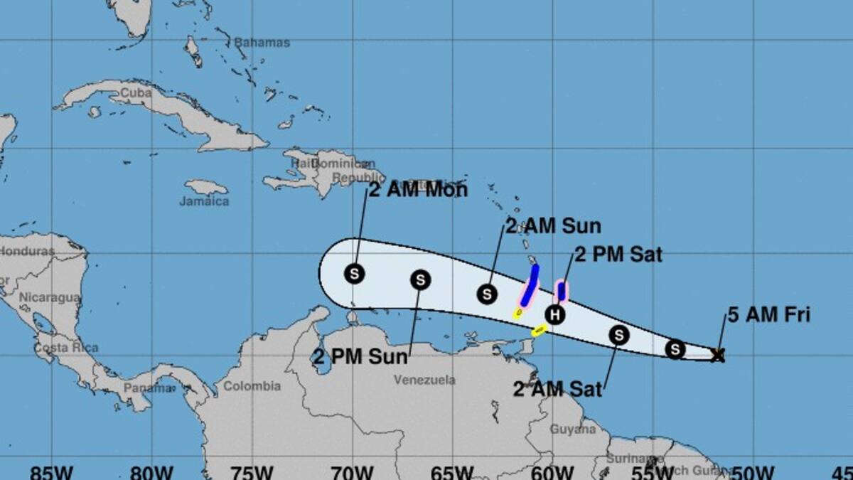 La tormenta se moverá por el sur Islas de Barlovento esta tarde y sobre el sudeste del Mar Caribe el domingo.