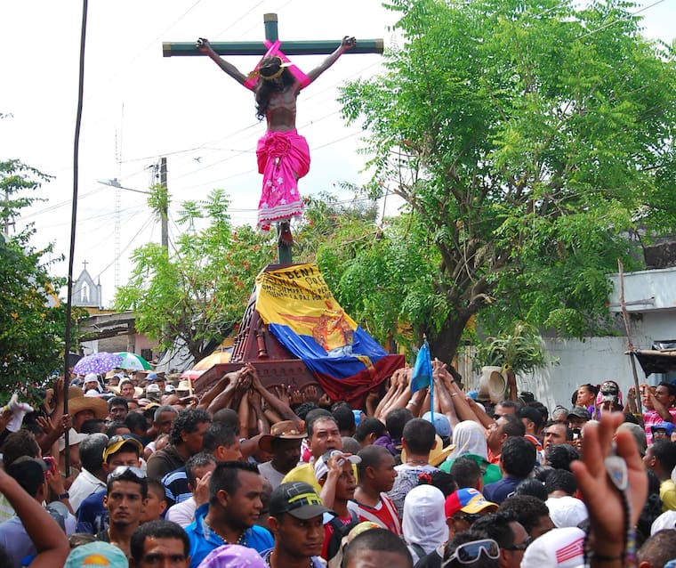 El Cristo parecía levitar sobre una masa negra que formaron las cabezas de los miles de fieles que lo siguieron a paso muy lento dando vivas a quien, según ellos, les ha concedido la sanación de sus familiares, les ha traído un ser querido a quien no veían hace tiempo o permitió que muchas mujeres concibieran hijos, pese a diagnósticos médicos desfavorables, tal como lo contó Elvira Sofía Miranda, quien llegó de Barranquilla para dar testimonio y presentar a su hijo de un año.