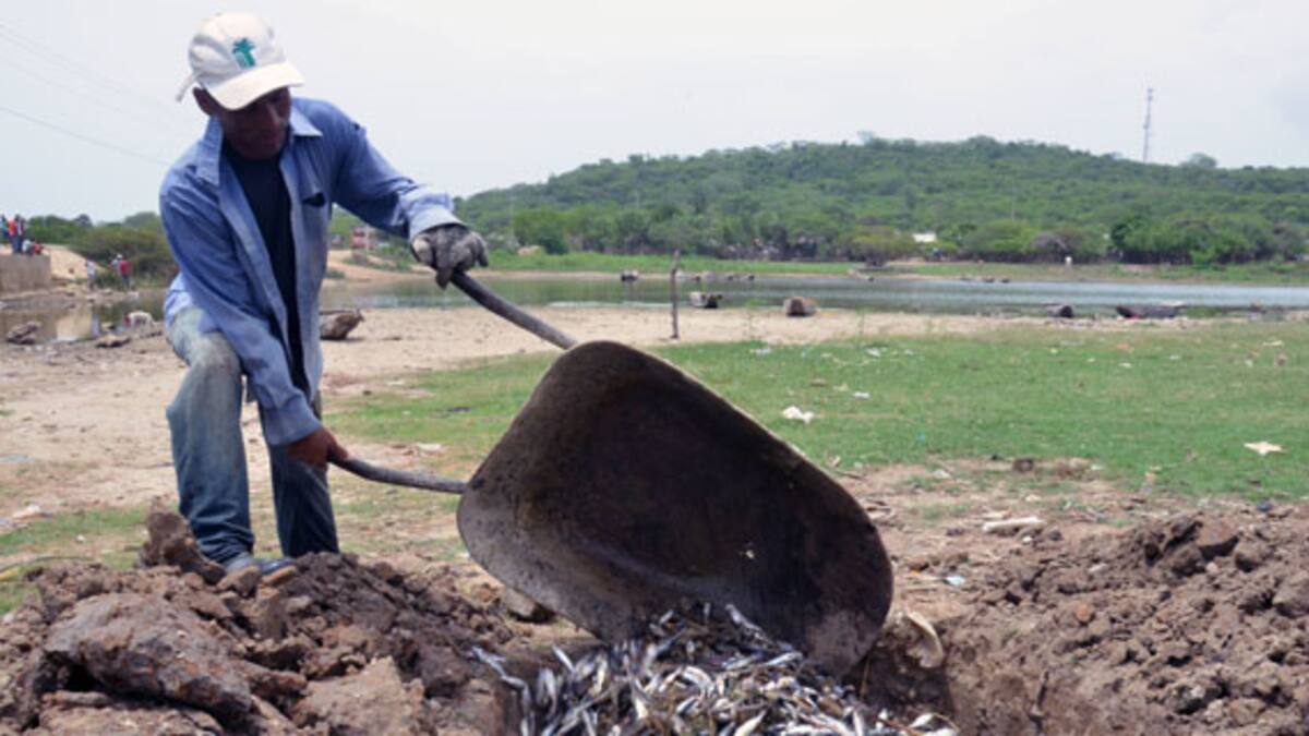 Ayer los mismos pescadores, con redes y con palas sacaron decenas de peces muertos de las aguas de la ciénaga y cavaron fosas para sepultarlos.
