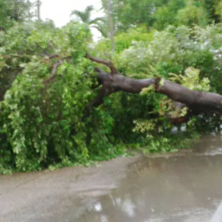 Las fuertes lluvias que cayeron sobre toda la ciudad, desde la noche del martes hasta buena parte de la mañana del miércoles, causaron el desplome de cuatro árboles, según reportó el Cuerpo de Bomberos.