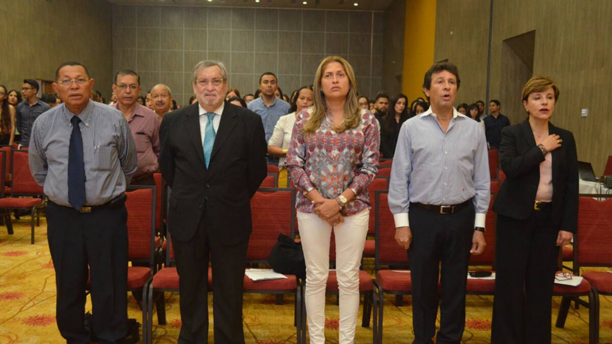 En primera fila, como líderes de esta importante realización académico-científica estuvieron, el Decano de la Facultad de Ciencias de la Salud, Dr. Felipe Zapata Donado, la Dra. Alma Solano Sánchez, Secretaría de Salud del Distrito; la Dra. Piedad Calle Uribe, Gerente de Custodia de Productos para Latinoamérica de Syngenta; el Dr. Jairo Cepeda Díaz, toxicólogo y docente de la Universidad del Norte y los doctores Agustín Guerrero Salcedo, y Carlos Benavides Sanguña, ambos del comité organizador del Simposio.