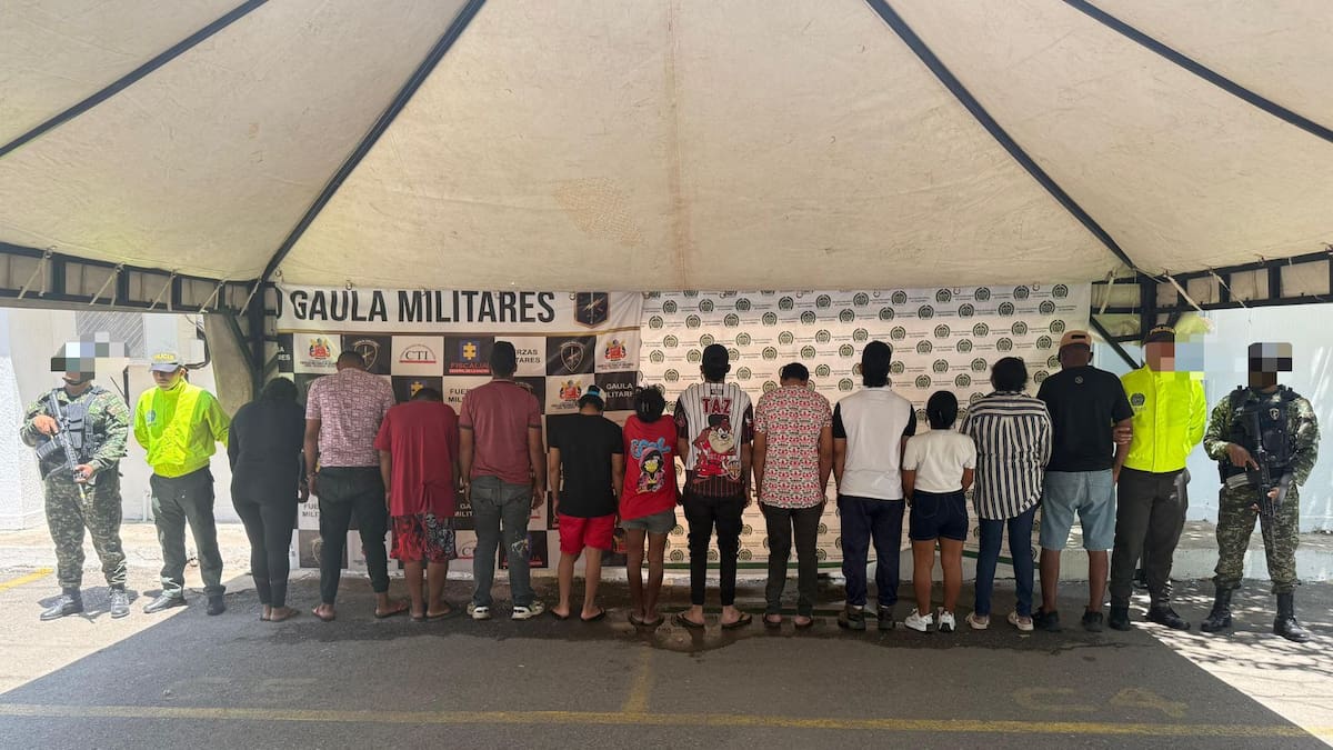 Soldados del Gaula Militar de la Décima Brigada, en un trabajo conjunto y coordinado con la Fiscalía General de la Nación y la Policía Nacional, lograron la captura simultánea de 12 presuntos integrantes del Grupo Armado Organizado (GAO) Clan del Golfo y Los Pachenca en los municipios de Bosconia, Chimichagua, Becerril y El Copey, en el departamento del Cesar.