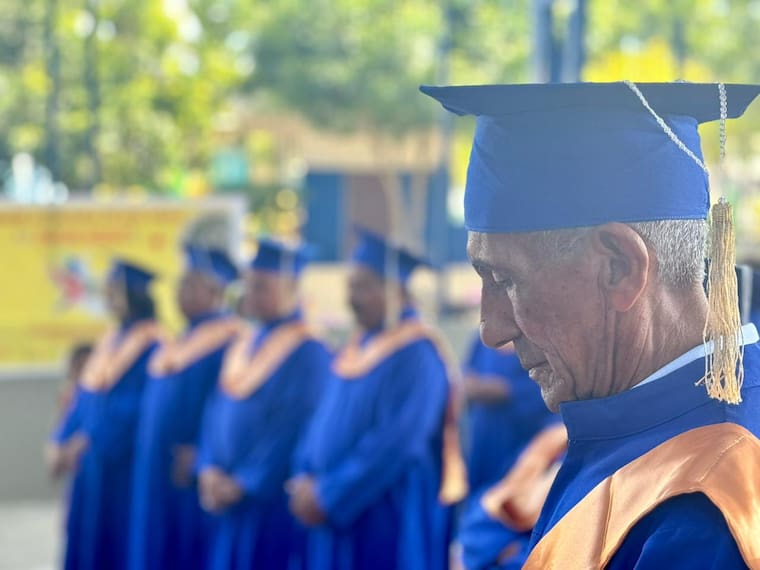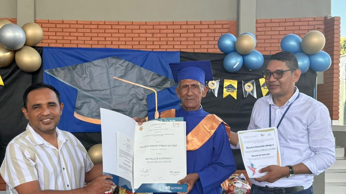 Entre los nuevos graduados sobresale Eulogio Amado Vargas Guerra, quien a sus 79 años alcanzó el sueño de “ponerse el camisón”, como él mismo llamó a la toga que lució.