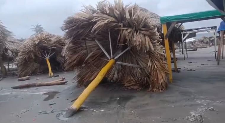 En el municipio de Puerto Colombia, varios kioscos ubicados en la zona de playa resultaron derribados por los fuertes vientos, situación que ha impactado directamente a los trabajadores del sector turístico y gastronómico.