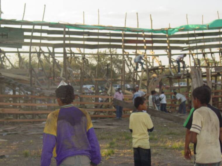 La caída de un palco de una corraleja, que dejó 21 personas heridas, estuvo a punto de convertirse en un problema de orden público en el municipio de Becerril, cuando la comunidad la emprendió contra la estructura de madera, la derribó y luego le prendió fuego.