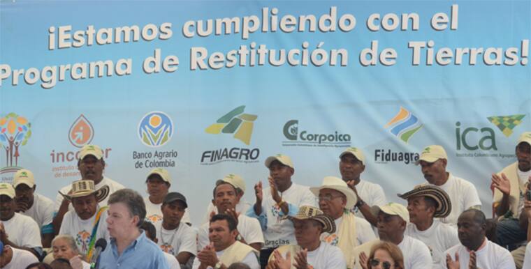 'En ese poco tiempo hemos venido preparando todo el andamiaje institucional, capacitando a los jueces agrarios, a las juezas agrarias, y poniendo en marcha todo lo que requiere este gran sueño de ir restituyendo la tierra a los campesinos que fueron despojados por la violencia', explicó el presidente Santos. 'Para recobrar esa vitalidad que en algún momento tuvo los Montes de María, inclusive no solamente recobrarla sino multiplicarla, necesitábamos iniciar procesos de reconciliación, de restitución, de reparación', concluyó el Jefe de Estado.