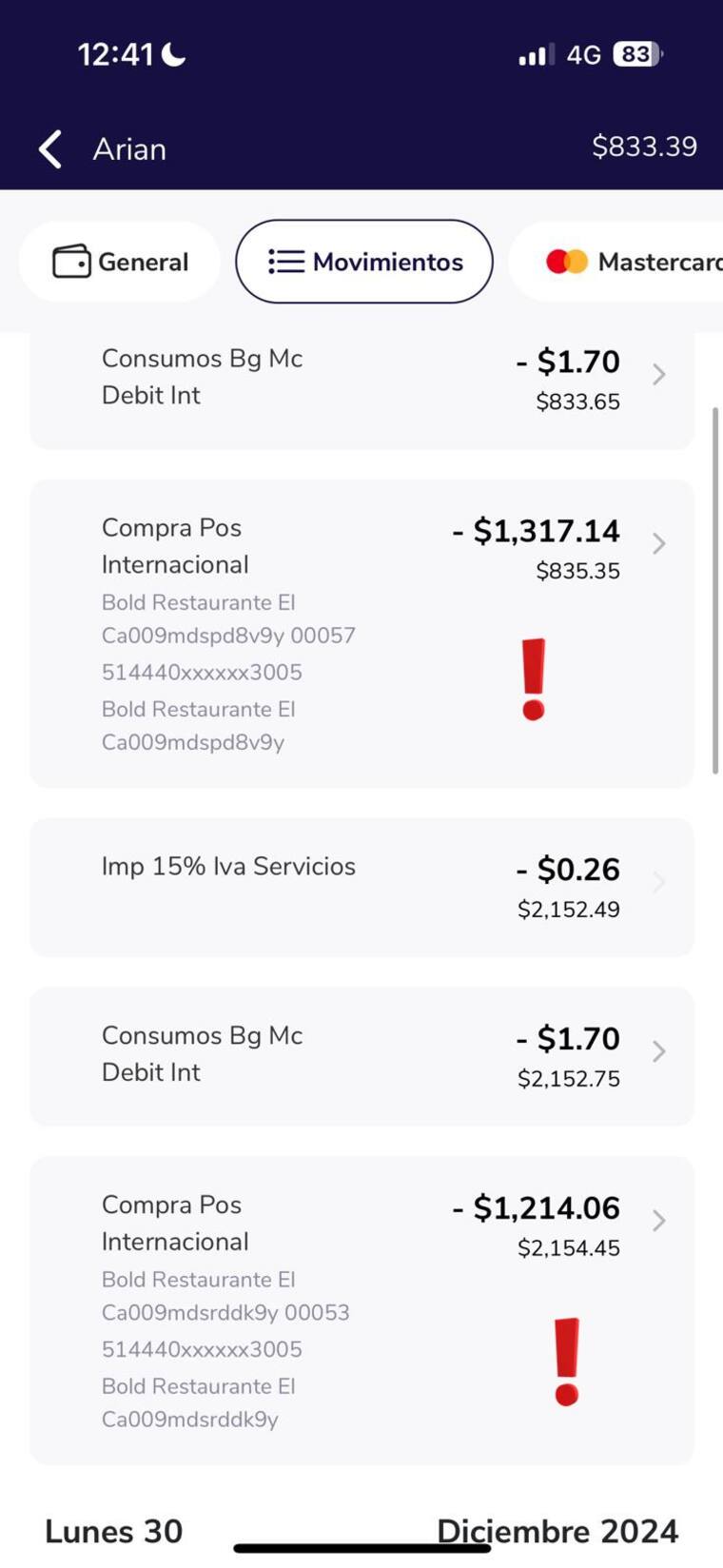 “Estábamos todos en la playa, el capitán nos hace 5 llamadas para saber dónde estábamos y a los 10 minutos al novio de mi hermana le llegan dos débitos a su tarjeta, lo primero que hizo fue llamar al banco e ir a buscar su tarjeta la cual estaba intacta donde la dejó. Resulta que el banco nos indicó que los pagos habían sido con la tarjeta física, es decir, usaron un data fast muy conocido aquí, es pequeño llamado BOLD, hicieron los descuentos y volvieron a meter la tarjeta en la billetera como si nada”, contó.
