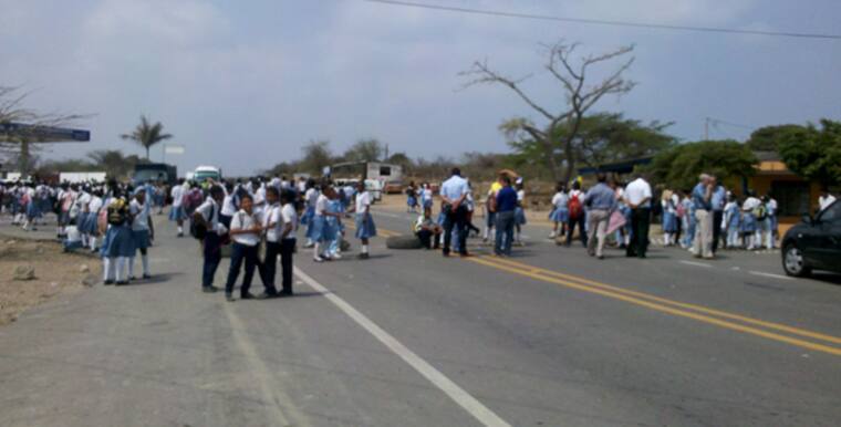 Estudiantes de la Institución Educativa Loma de Arena bloquearon ayer por tres horas la Vía Al Mar, en jurisdicción del municipio de Santa Catalina, corregimiento de Lomita Arena, para protestar por la falta de docentes en el plantel.