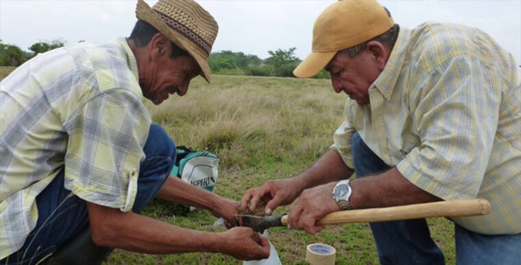Representantes de las 60 familias que retornarán al predio Santa Paula, vereda Leticia, Montería, este diez de abril, beneficiadas con fallos de restitución del Tribunal Superior de Antioquia, están por estos días identificando sus parcelas en la gran hacienda que fue del clan Castaño, y además realizan algunas muestras de suelo para definir los cultivos que realizarán.