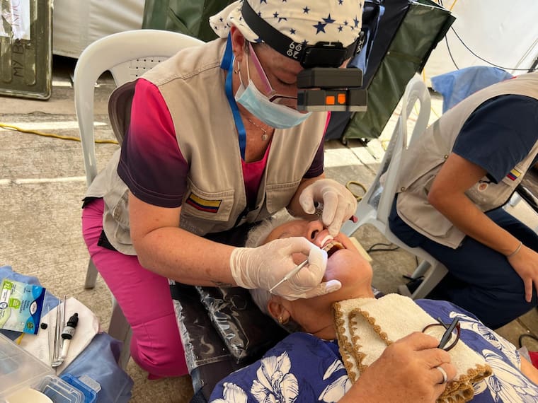 Además de la atención en salud, se entregaron ayudas humanitarias que incluyeron cajas de arroz Mannapack, ropa de segunda oportunidad, medicamentos, 500 kilogramos de material médico y sillas de ruedas, alcanzando un total aproximado de 1.5 toneladas de carga en beneficio de las familias guajiras.