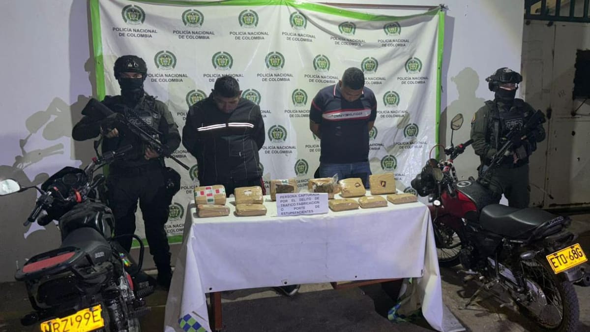 Los policías procedieron de inmediato a la materialización de la captura por el delito de tráfico, fabricación o porte de estupefacientes, informándoles sus derechos conforme a la ley. Ambos detenidos fueron puestos a disposición del fiscal URI en turno para su proceso de judicialización.