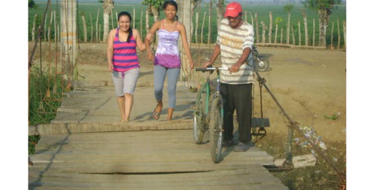 Tal como lo muestra la imagen, la comunidad de la vereda Bellavista, que se comparten los municipios de Ciénaga de Oro y Chimá, Córdoba, se someten cada día a una especie de prueba de supervivencia con la utilización de un obsoleto puente colgante, con piso de madera, que lleva cerca de dos décadas sirviendo para travesar el caño Berástegui sin que ninguna autoridad se pellizque y reemplace la estructura por una de concreto.