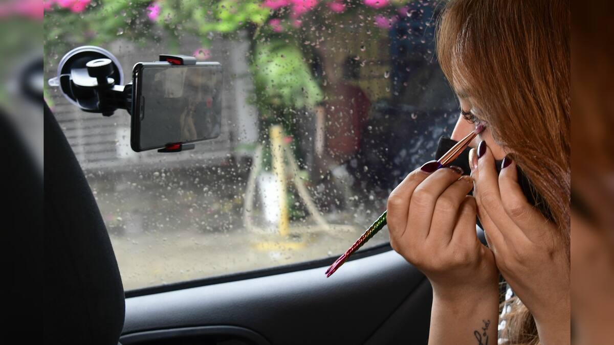 Antes que nada aclaramos que hemos cambiado las reglas de juego. ¿Cómo así? Con ánimo de hacerlo más personal realicé el ejercicio de maquillarme camino al trabajo. Sepa que el truco fue aprovechar cada semáforo en rojo para realizar el paso a paso del makeup. Eso sí, sin olvidar desinfectar mis manos antes de empezar.