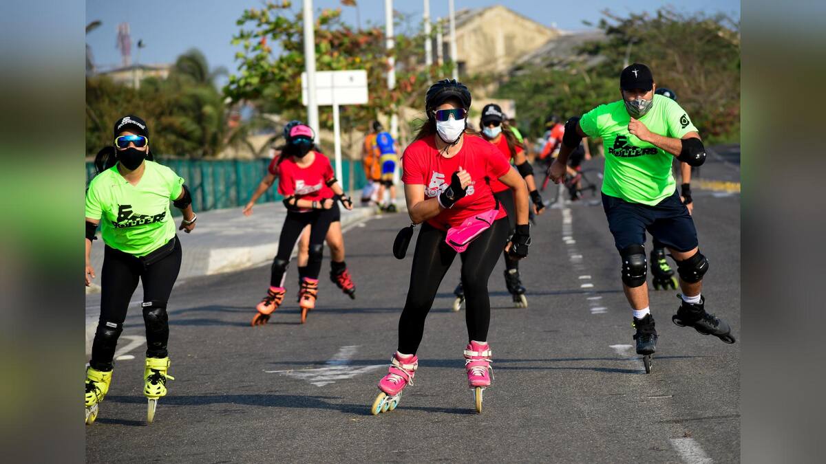 Frente al río Magdalena y antes de que salga el sol se reúnen los rollers para iniciar con toda la energía la mañana. Con cascos, coderas, rodilleras, ropa cómoda y tapabocas se preparan para rodar, esta vez, por la ciclovía de El Gran Malecón.