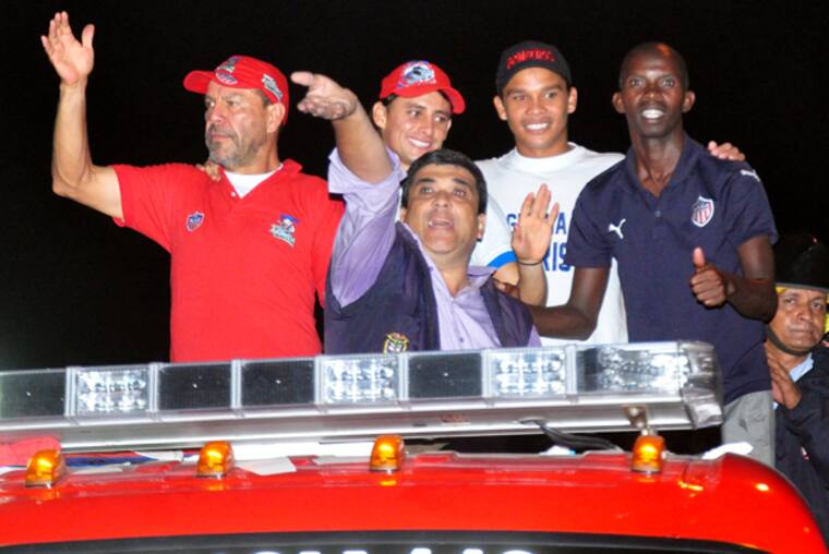 Los seguidores del Junior se volcaron a las calles y aguardaron hasta las primeras horas de la madrugada del jueves para rendirle tributo a los integrantes del equipo que se coronó campeón en Manizales.
