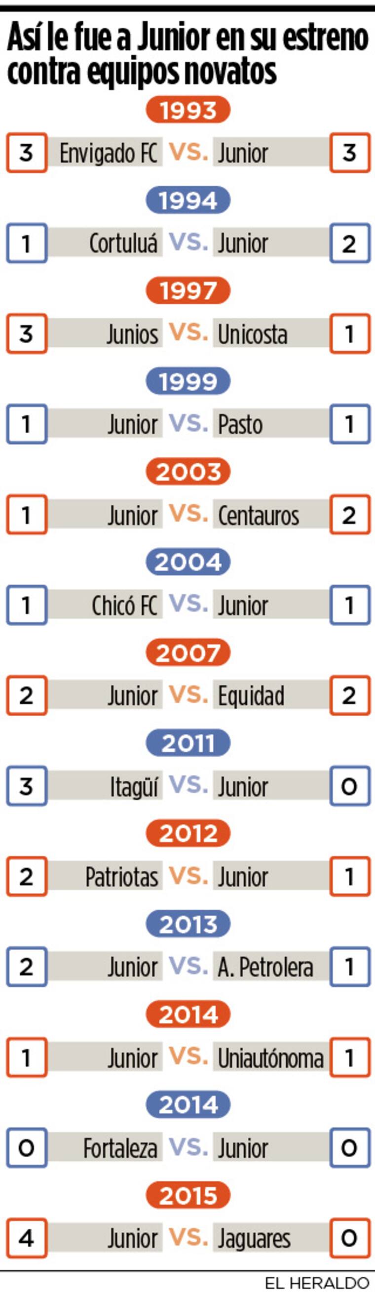 Desde que se implementó la modalidad de torneos cortos, el cuadro barranquillero solo se ha impuesto en su primer choque a dos equipos novatos de los nueve que ha enfrentado: Alianza Petrolera (2-1) y Jaguares (4-0). De resto acumula cuatro empates, frente a Chicó FC, Equidad, Uniautónoma FC y Fortaleza, y tres derrotas, ante Centauros, Itagüí FC —hoy se conoce como Águilas— y Patriotas (ver infografía).