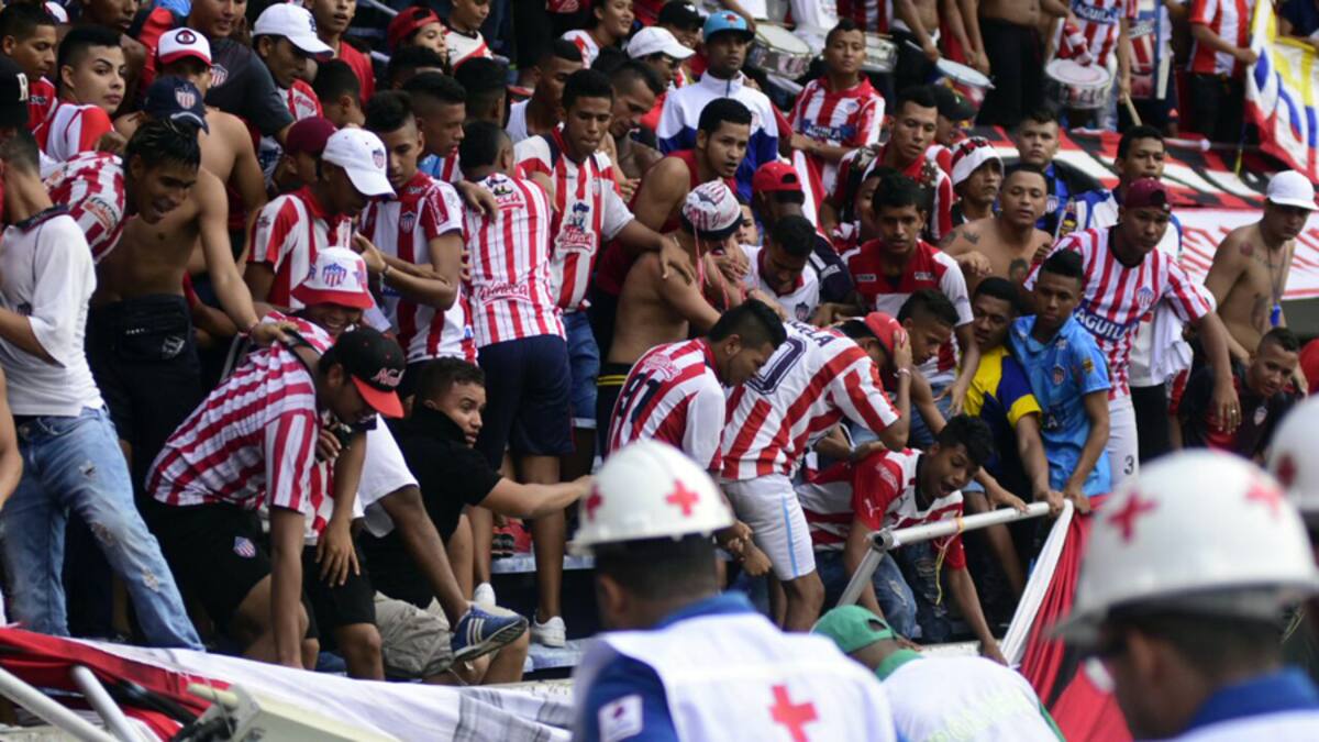 Una baranda de la tribuna de norte colapsó al momento de la celebración del tanto de Jarlan Barrera, que significó el segundo gol de Junior sobre Atlético Nacional, en el estadio Metropolitano Roberto Meléndez, dejando un total 12 hinchas lesionados, 11 de estos fueron atendidos en el propio estadio, mientras que la otra persona afectada fue remitida a un centro asistencial.