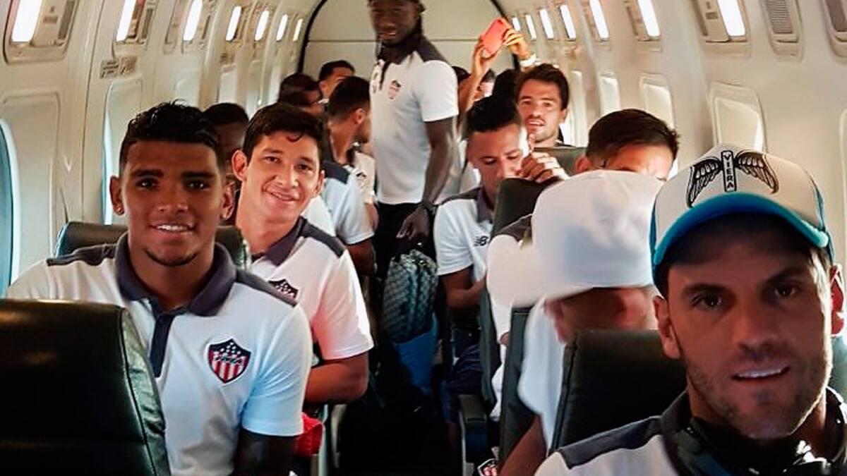 A través de la cuenta de la red social Twitter, el equipo rojiblanco subió una foto en la que aparecen abordando el vuelo charter que los condujo a la capital del Valle.