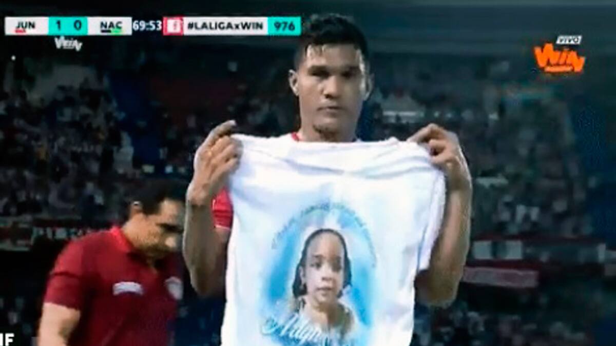 Luego de marcar su gol ante Atlético Nacional, el jugador de La Chinita corrió en busca de una camiseta que tenía el rostro de la pequeña de dos años quien falleció producto de una bala perdida en hechos registrados en Vista Hermosa, municipio de Soledad.